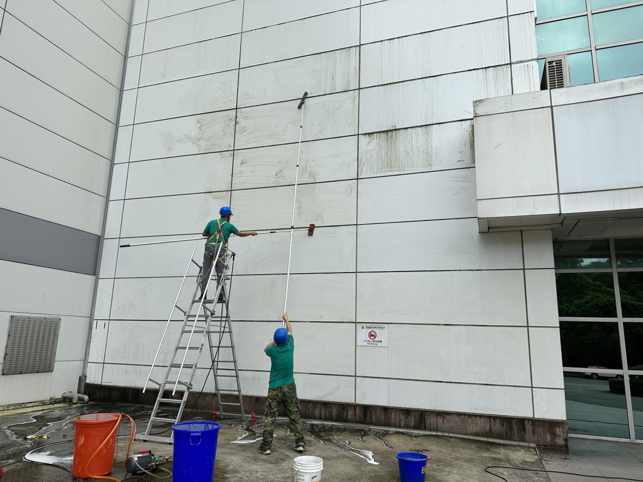 外牆清洗施工中